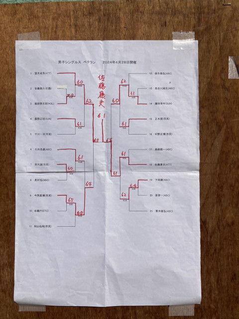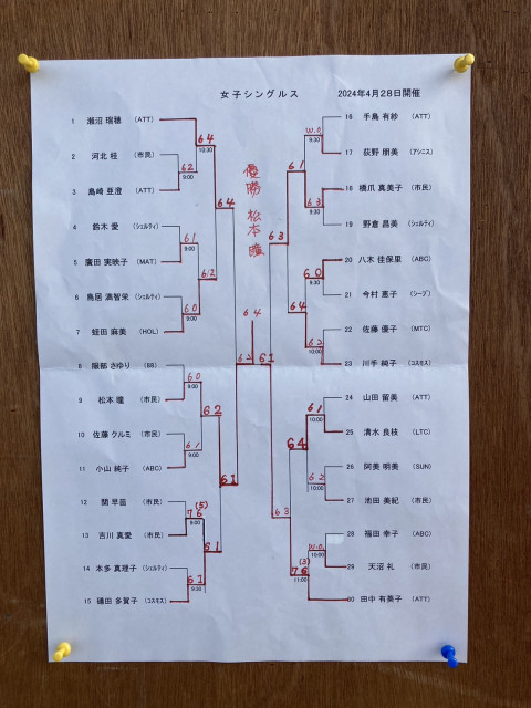 【試合結果】R6小金井市選手権シングルス大会(女子/男子ベテラン)4/28開催
