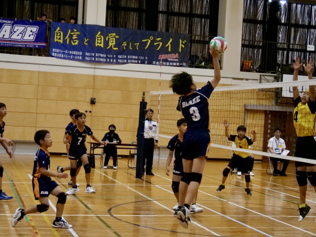 ついに6年生最後の大会JA共済杯県大会。ベスト4決めで、目標でありライバルでもある石田ジュニアさんと激突。相手エースに3枚ブロックで対抗し、最後まで追い詰めるもあと一歩届かず、関東大会進出を逃しました。最後までブレイズ魂を見せてくれた6年生。最高のゲームでした!