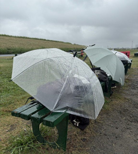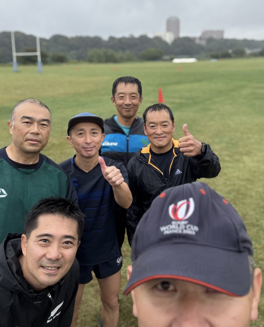 グラウンド着く前に雨が強まり、早々に解散も覚悟しました。ところが、熱きおじさんの心意気が通じたのか、練習開始してすぐに小降りとなり、終盤は雨もおさまり、人数少ないながらも無事終えることができました!