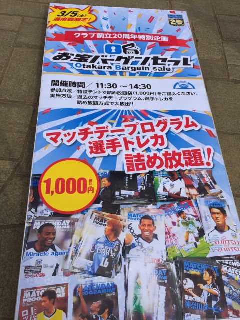 2003年からのマッチデープログラムとトレカの古本市みたいな会場設営(会場づくりはおてのもの。フロンターレスタッフがあまりの手際の良さに あぜん としてました{emoji index="87"})と、限定2000着のユニホーム販売のお手伝いをしてきました!