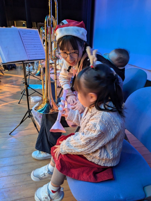 多くの親子連れの方と楽しい時間を過ごすことができました。隊員も子供をおんぶして演奏してました。