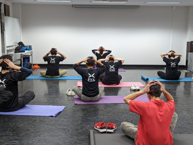 この日のストレッチは眼の疲れや首の凝りに効くものがメイン😌