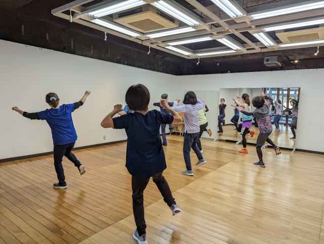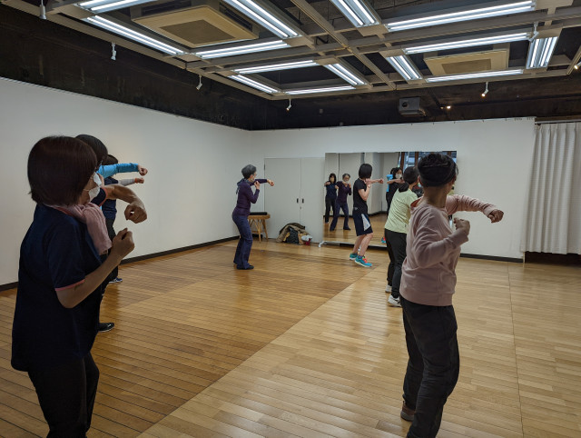 本日のリズムボクシングは足のステップと前の手のダブルのパンチを組み合わせたコンビネーションでした。