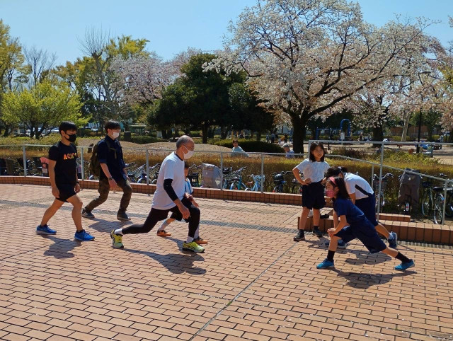 この日はかけっこ教室の子どもたちは、桜がまだ美しく、気持ちの良い天気の中屋外にて行われました😊
