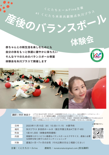 このたび、矢川プラスにて産後のお母さん向けのバランスボールエクササイズ体験会を行うことになりました✨