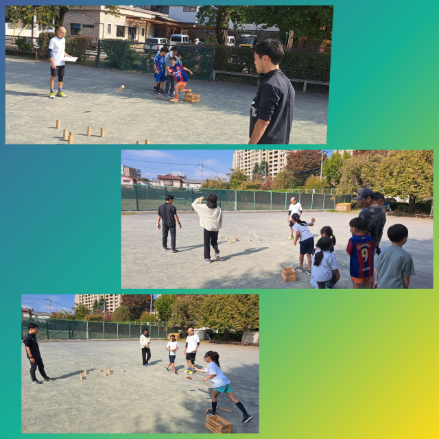 今日は外だったので、投げる力で体幹を使うモルックに挑戦!投げて狙い通りに倒せるか!