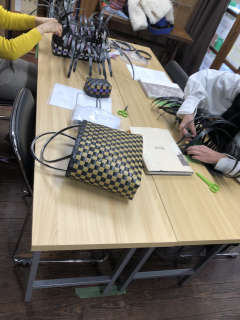 2月のプラカゴ作りを行いました。初めての方は小物入れ作りから中のバッグの土台作りまでチャレンジされました🌟✨