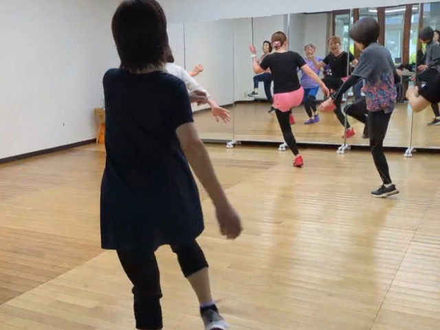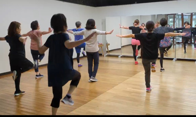 細かいキャリオカステップから突如片足立になりバランスをとります