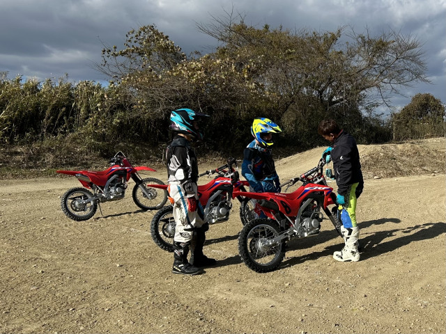 ライダーパーク生駒でオフロードバイク体験のスクールに参加しました。写真は「はじめてのクラッチ編」のもので、撮影者の川端は翌日の「基本編」に参加しました。