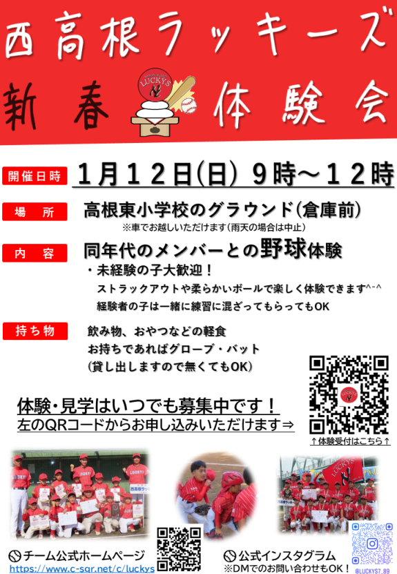 明けましておめでとうございます\(^o^)/ 2025年初のラッキーズ軟式野球体験会を行います! 小学生以下のゴールデンエイジであればだれでも参加OK⚾ 女の子も未就学のお子様もお待ちしています! お気軽に親...
