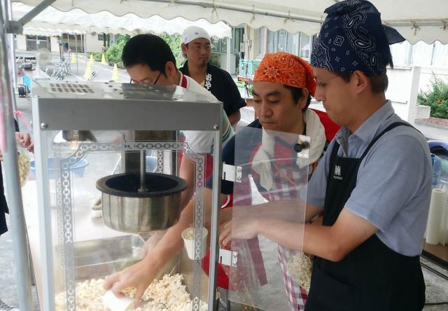 祭り終了後は、テントや備品の片づけ作業のお手伝いをし、