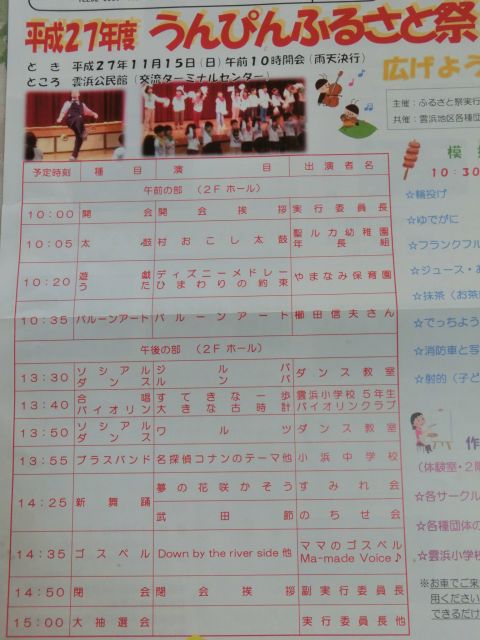 11月15日午後から出演する「うんぴん・ふるさとまつり」のチラシが出来ました~♪
