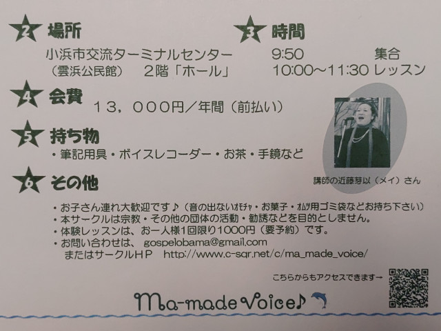 現在はコロナの影響でワイワイお喋りしながらレッスンを受けることはできませんし、距離を保ちながらのちょっぴり孤独なレッスンではあります。しかし、この逆境を「少し離れた場所にいる仲間の声を聴きながら歌う(=ハーモニーを意識する)絶好の機会」と捉え活動を続けています。また、メンバー同士の交流も大切にしているのも大きな特徴です。よかったら仲間になりませんか?