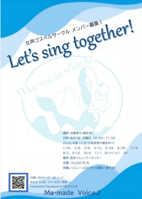 毎月1回【金曜日】に開催してきたMa-made Voice♪ですが、2026年度より【日曜日】にレッスンを行うことになりました!
