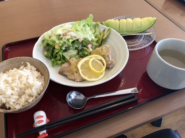 (昼食は、BALENAさんのカフェスペースで管理栄養士監修の減塩ランチ♪)