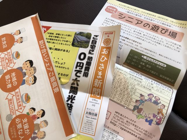 他にも、スペースナナさんで始まる「シニアの遊び場(横浜市介護予防・生活支援サービス補助事業。毎週水曜11~14時)」、初期費用0円の太陽光発電の取り組み、青葉区障がい者後見的支援室「ほっぷ」の地域の見守りを増やす取り組みなども共有しました。