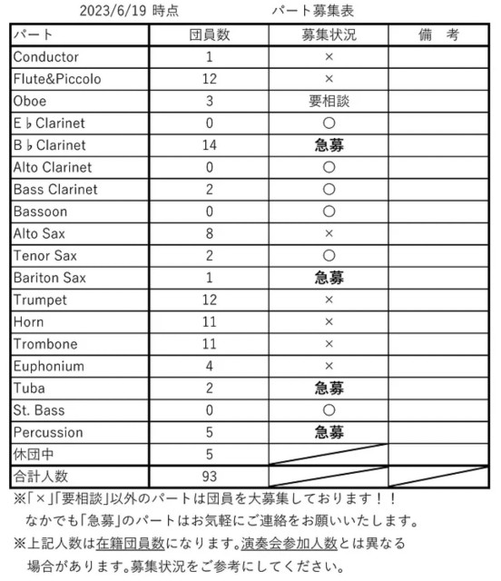 定期演奏会に向けて募集パートが少し減ってきているので、ご検討の方はお早めに📮