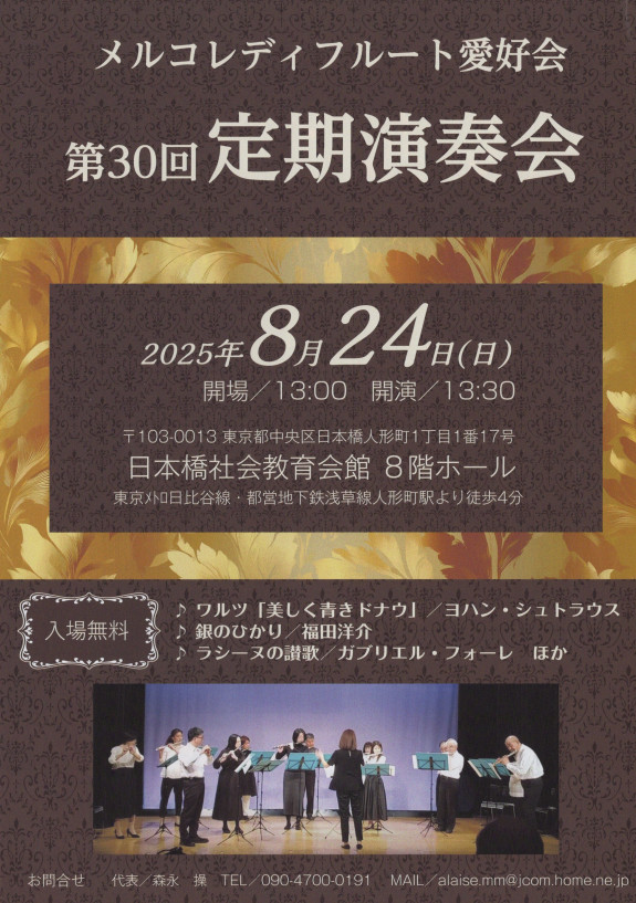 第30回メルコレディフルート愛好会 フルートコンサートを開催いたします。