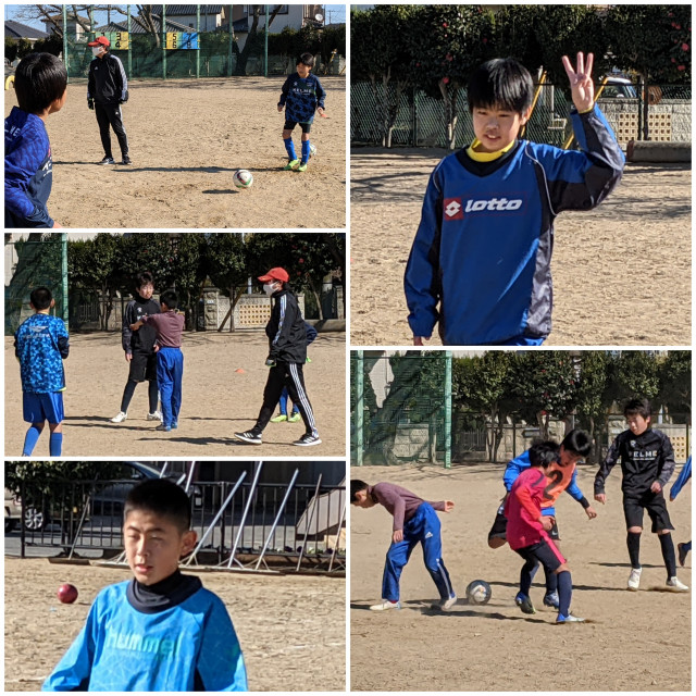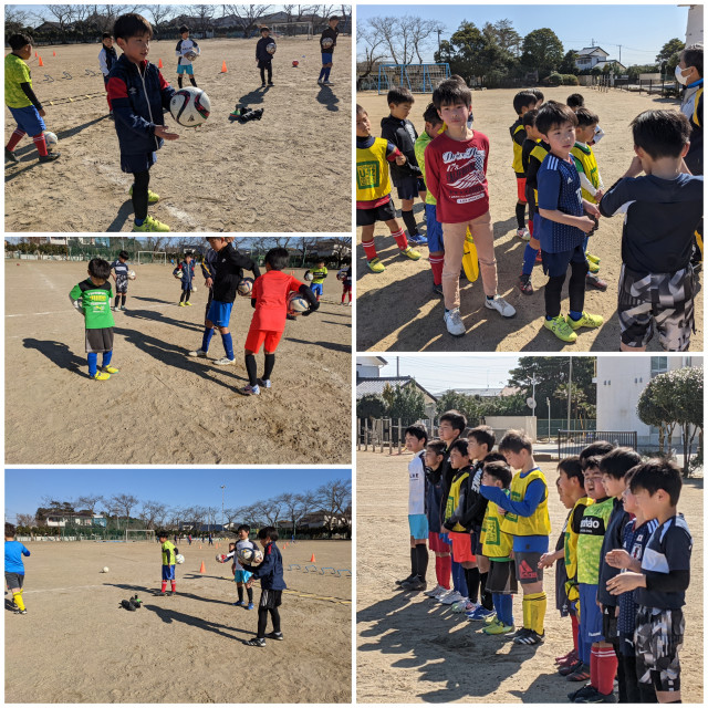 ウォーミングアップ、柔軟の後はパス、トラップ、ドリブル、ターン等基礎練習、ミニゲームをおこないました。
