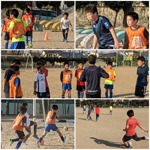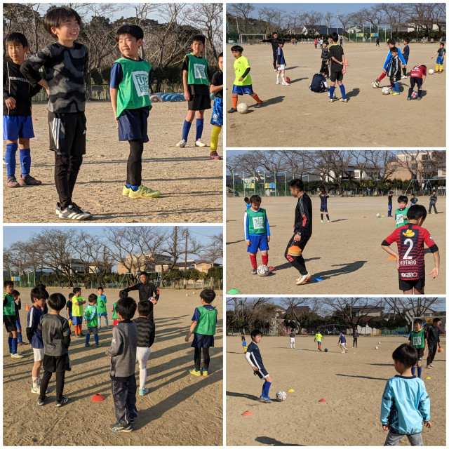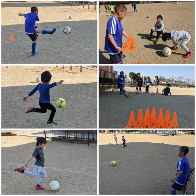 ウォーミングアップからボックスのパス(トラップ)、3列ランニングパス、シュート練、ミニゲームを行いました。ボールを蹴る、止めるは基本ですが使う脚を限定するととても難しくなります。中学生まであと少し!基本をもう一度再確認しよう!!