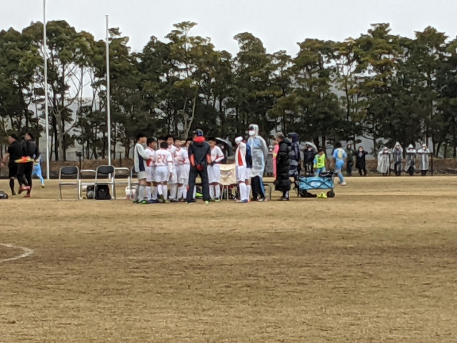 潮来市長杯2日目は前日からの荒天予想によりスケジュールが変更され、トーナメント方式に変わりました。ボールが戻ってしまうほどの風は瞬間7m/s!大人でも立っているのがやっとな強風と雨の中、三笠小SSSのみでなく、参加した他のチームもよく頑張りました。