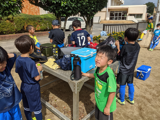 だんだん暑くなってきて練習中の給水も多くなります。大き目の水筒や、冷却用氷嚢などご用意ください。