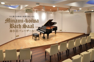 南小岩バッハザールは最大60名でお楽しみいただける音楽ホールです。八角形の広さをいかしたシックな空間になっております。クラシック音楽を中心に、ピアノ・合唱・アンサンブルなどのコンサート、発表会、個人練習など様々な用途でご利用いただけます。