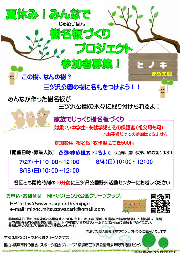 参加費用は昨年同様、樹名板1枚作成につき500円!(この値上げラッシュの中、頑張ってます💦)