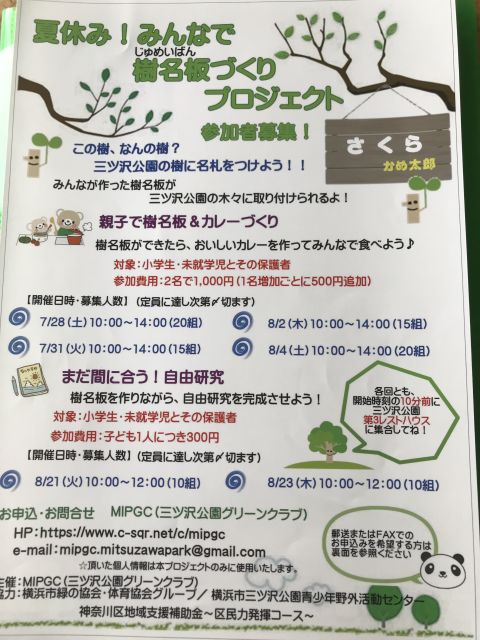 下記URLからみんなが作った樹名板の写真が見られます。 http://30d.jp/mipgc/2