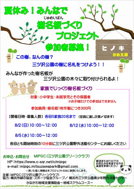 みんなで樹名板づくりプロジェクト空席のお知らせ