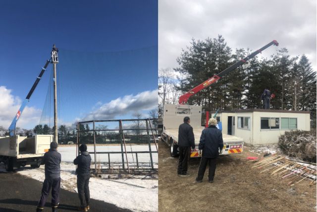 その練習の傍らで東洋計器グラウンドの引っ越し作業が進められています。