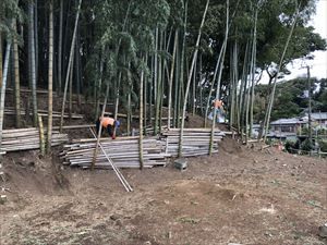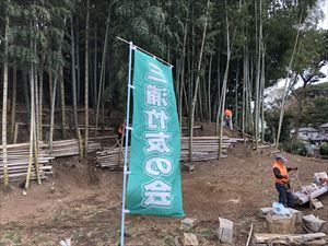 リーダーが予め草刈りしてくれていたので、古竹の伐採と枯れた木を2本伐採する。参加者は会員5名と竹林オーナーでした。
