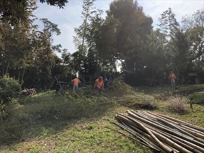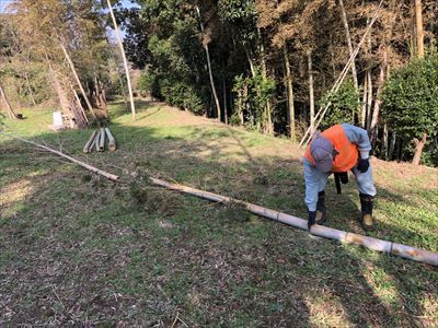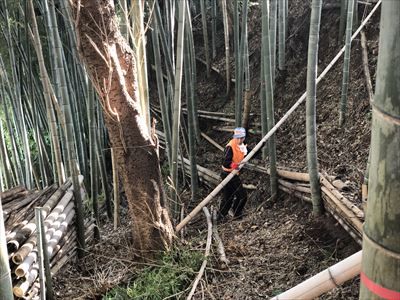 北傾斜地枯竹、倒竹、不要竹の伐採を行う