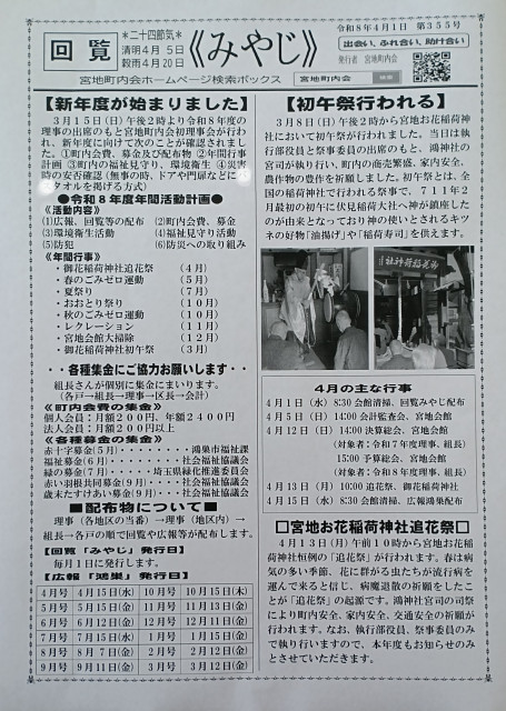 町内会報 回覧「みやじ」 2023年4月号から掲載