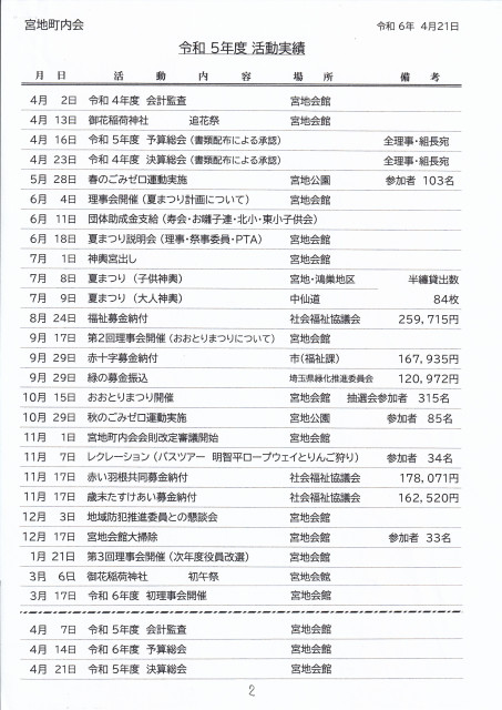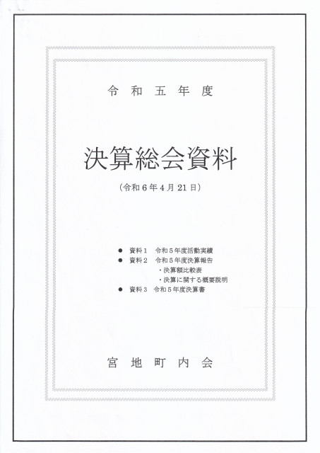 本日(令和6年4月21日)宮地会館にて理事、組長、執行役員が集まり令和5年度の決算総会が開催され、満場一致で下記の議案がすべて承認されました。新年度も皆様と共に「住みよい地域をみんなの手で」を念頭に進んで参りましょう。