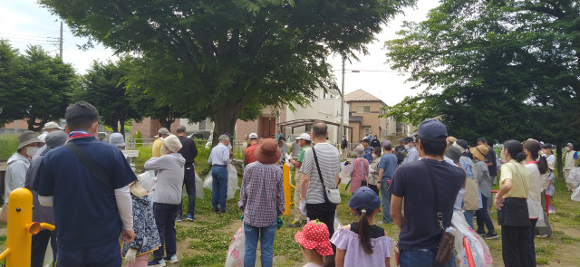 本日(2024年5月26日、8時30分、宮地公園集合)、宮地町内会では132名の会員の皆様にお集まりいただき、春のごみゼロ運動を実施しました。お陰様でごみ袋24個(※注)分、私達の町をきれいにすることができました。お集まりいただいた皆様の意識の高さは素晴らしいものだと改めて感じ入りました。