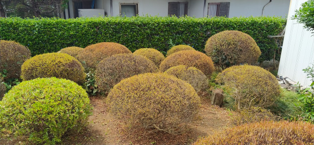 4月中旬から私たちの目を楽しませてくれた町内会館隣接の御花稲荷神社境内のつつじを今日剪定しました。