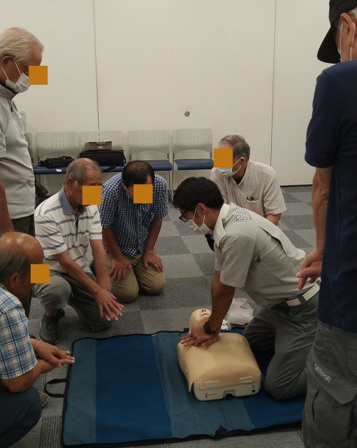 宮地町内会からは9名参加しました。とても分かり易い説明と実技を何回も体験したり見ることができたので実に身に付く講習会でした。