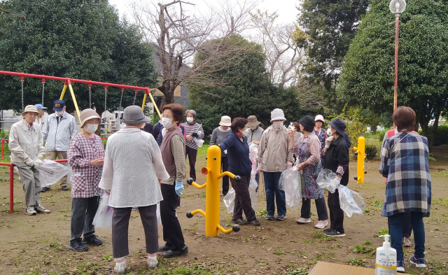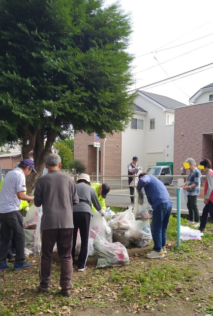 宮地公園に8時30分集合で、町内会長の挨拶のあと、参加者91名がご家族で、知り合い同士でワイワイと各方面に散らばり、1時間ほど町内のごみを拾い集めました。
