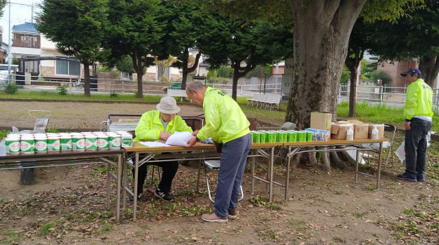 参加者にはおみやげとして、ごみ袋1セット(10枚入り)と飲み物を配りました。あと、今回はトイレットペーパーの寄付があったので先着30名に配りました。