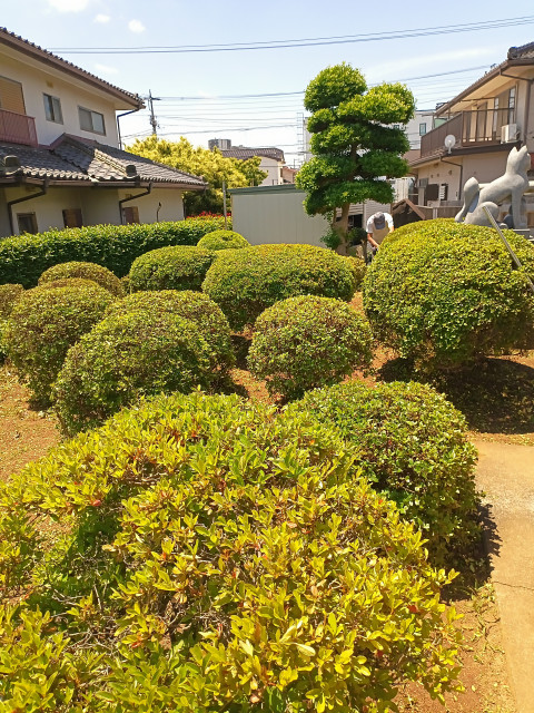 年に一度、宮地町内会館敷地内に祀られている御花稲荷神社境内のつつじの剪定を行っています。明け方にたくさん雨が降っていたので心配しましたが、どんどん晴れて来て暑いくらいになり助かりました。午前9時から総勢8名で作業開始し正午前に終わりました。今年はあまり花が付かず残念でしたので今回は時期を早め、気持ちを込めて刈りました。