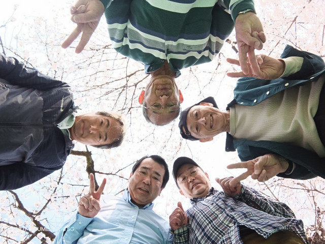 鴻巣桜まつり会場の鴻巣公園で町内会メンバーで花見しています。