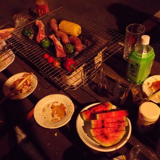 お盆休みに、なんでも混合ダブルス後のBBQ