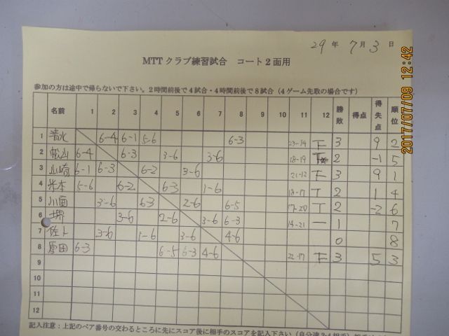 1位 山崎 2位 清水 3位 原田 4位 米本