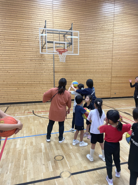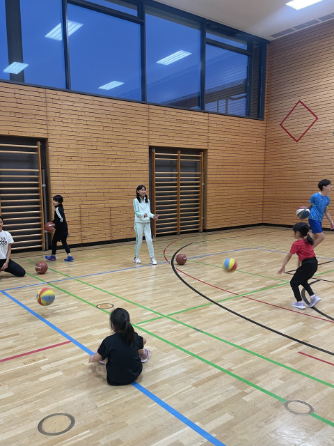 小学生の部では、今回から私はサポート役にまわり、ママさんヘッドコーチ中心に練習メニューを組み立てもらいました。練習開始前に6年生女子が自主的に1年生とパス練習をしてくれていたのが嬉しかったです。(NY)