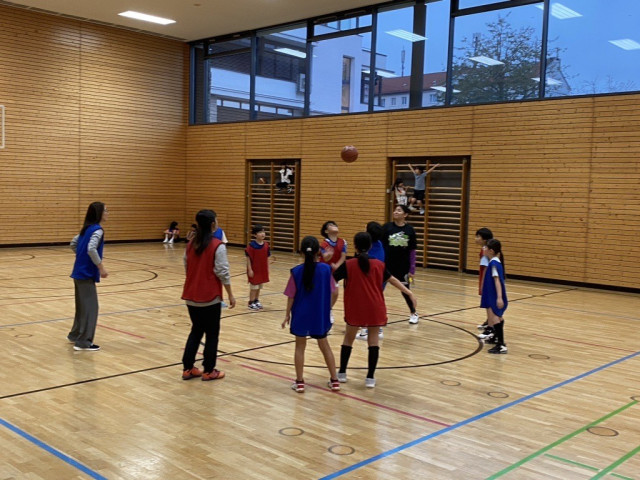 今日は前方に走った味方にロングパスし、そのままシュートにつなげる練習をしました。練習の成果がゲームにも出て、速攻で得点に結びつく場面が見られました!