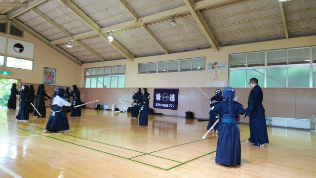 低学年組は基本をしっかりと身につけるため声を出し、一つ一つの打ちを丁寧に指導してもらいました。