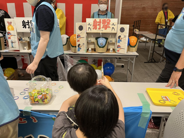8/11(金・祝)10:00~16:00、横浜市役所総務局監理課初の企画「わくわく!こども夏まつり」縁日ブースで、中区スポーツ協会から「輪ゴム鉄砲(射げきゲーム)」を出展しました。
