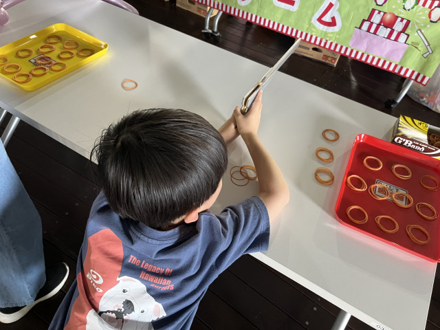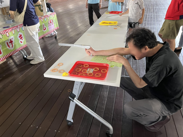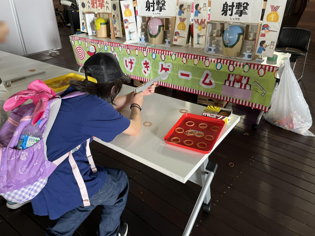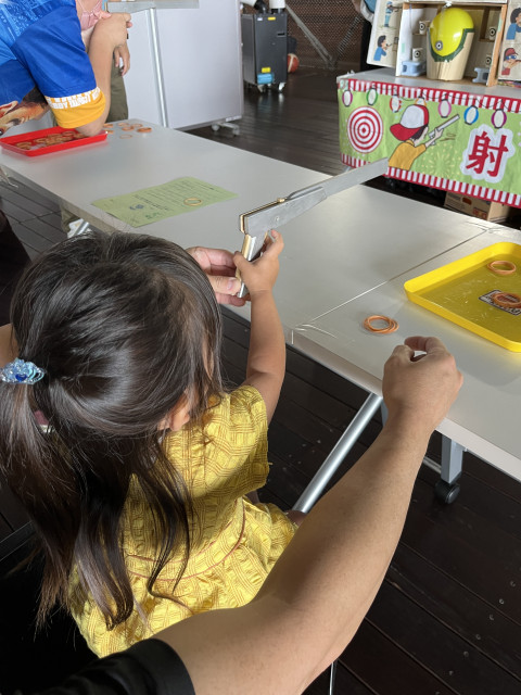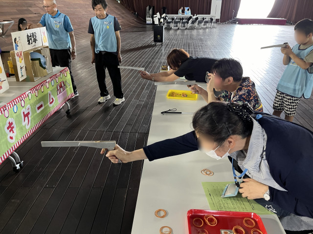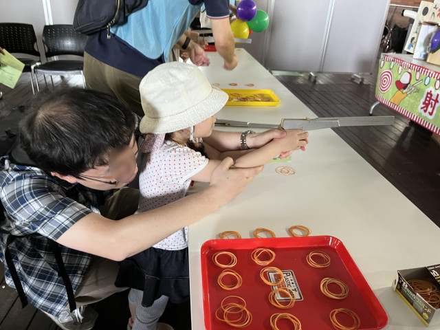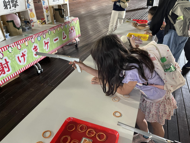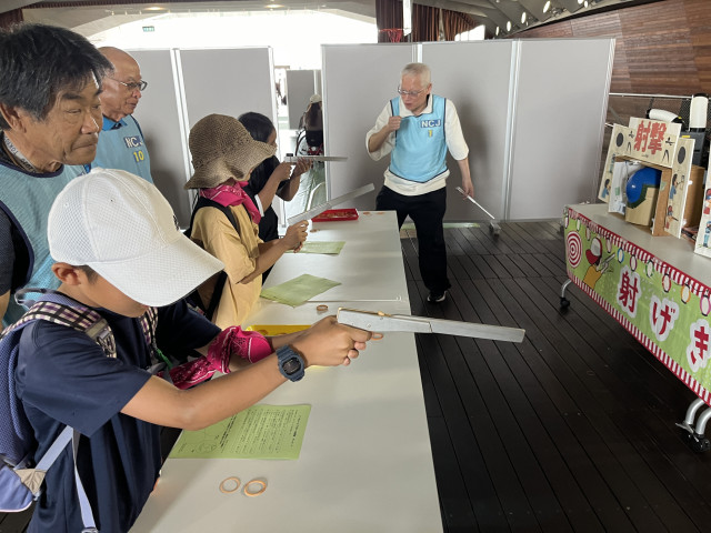 当日は、文明開化ウォークラリーのゴール地点位なっており、ゴールを終えた方やそれ以外方のも含め160名の方にご参加いただき輪ゴム鉄砲で射撃を体験していただきました。