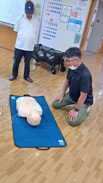 議事中の安全管理研修で救命講習として胸部圧迫(CPR)とAED(自動体外式除細動器)の使い方について講習会を実施しました。